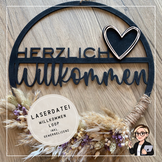 Herzlich Willkommen | Holzschild Loop